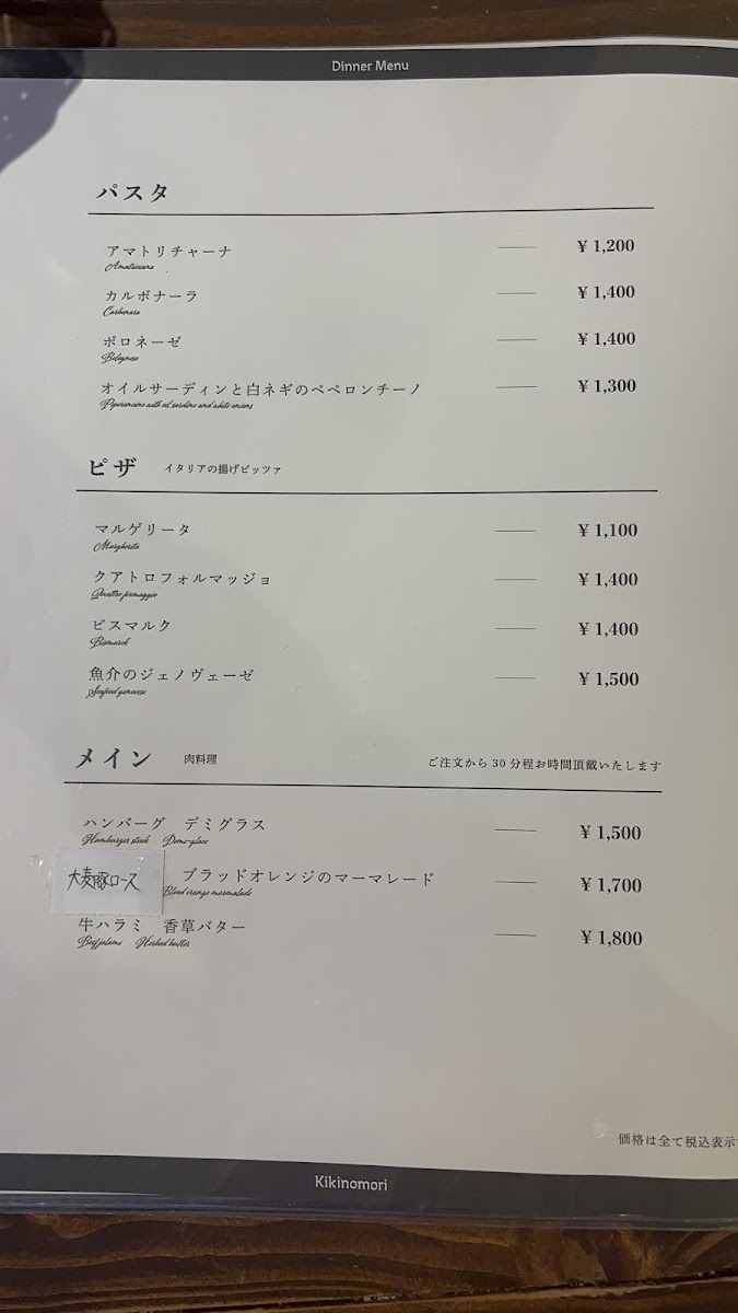 Kikinomori Menu